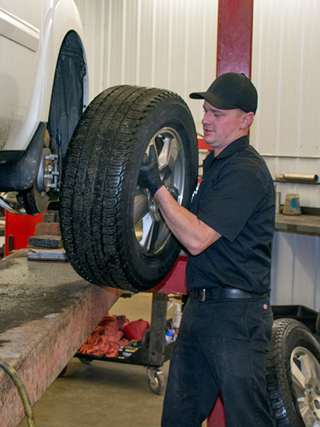 New tires, flat tire repair, tire mounting and rotation, wheel balancing, wheel alignments and full suspension repair.